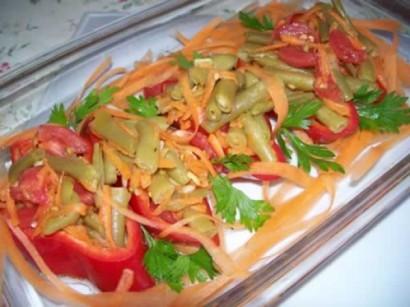 - Börülceler ayıklanır kılçıkları alınır , tuzlu suda haşlanır ,suyu süzülür soğuyunca içine bir adet havuç rendelenir 1 adet domatesin kabukları soyulur küp doğranır ilave edilir tuz, limonsuyu, zeytinyağı ve sarımsak eklenir iyice karıştırılır . 1 adet kırmızı biber verev 1 er santim doğranır hazırlanan salata biberlerin içlerine yerleştirilir diğer havuç soyacakla ilk önce kabuğu soyulur kalan kısmıda aynı şekilde soyulur salata bu soyulan havuçlarla süslenir .