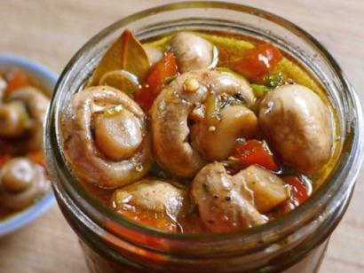 - Büyük bir kavanozun dibine sarimsaklari dökün,üzerine mantarlari yerlestirin.