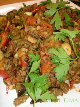 - büyüklüğünde doğranacak.Önce fasulyeyi daha sonra biberleri daha sonra patlıcanı,
