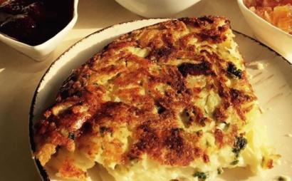 - Ayrı bir tavaya sıvıyağ konur. üzerine yumurtanın yarısı dökülür. Onun üzerine kızarttığımız patatesli soğanlı karışım üste de kalan yumurta dökülür ve alt üst çevrilerek kızartılır.