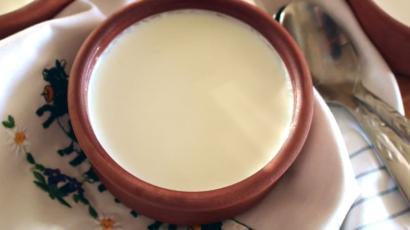 - bir kaşık yoğurdu bir kaseye alın, kepçe yardımıyla sütten alıp kasede süt ve yoğurdu karıştırın